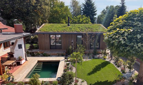 Dispozice domu je 3+kk na zastavěné ploše 75,4 m2.