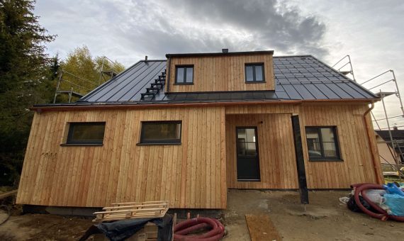 Dispozice domu je 4+kk na 104m2 + garáž 44m2.