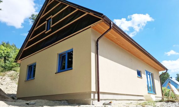 Dispozice domu je 2+kk na zastavěné ploše 55 m2.