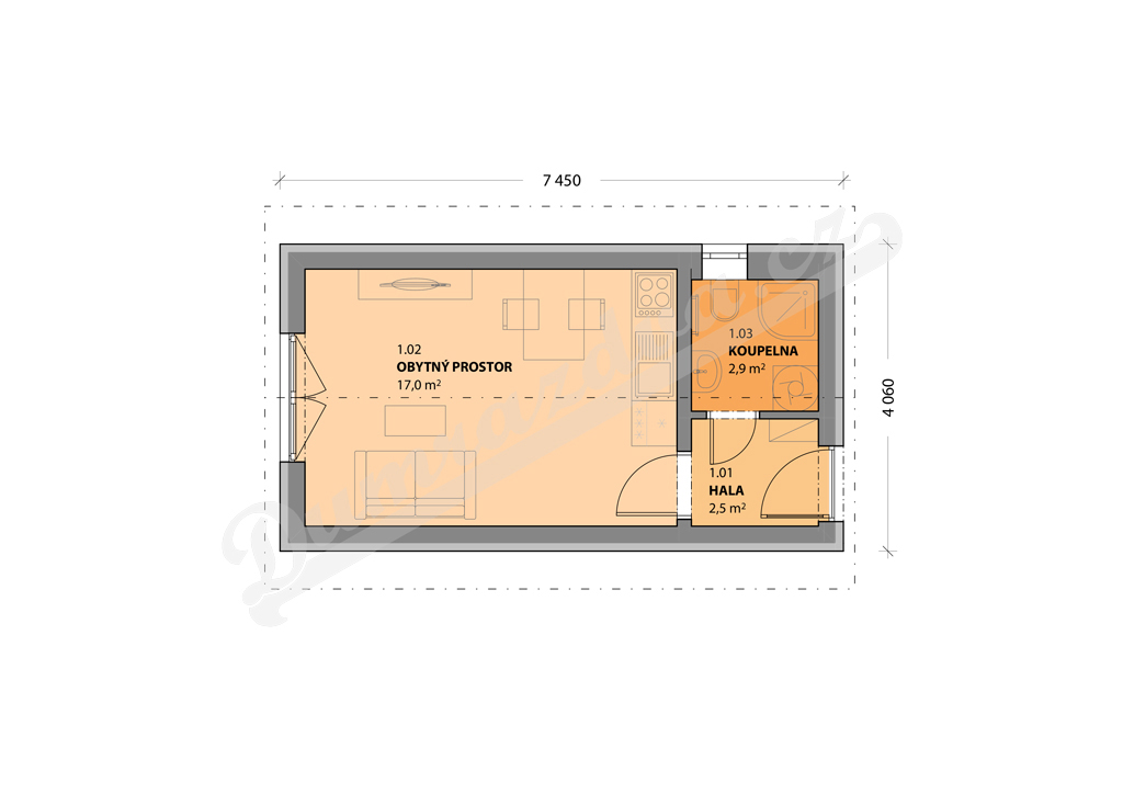 Nízkoenergetická dřevostavba Bungalov 0 (1+kk)