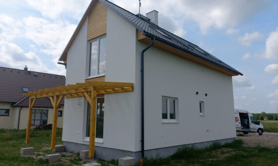 Dispozice domu je 3+kk na zastavěné ploše 93,4 m2.