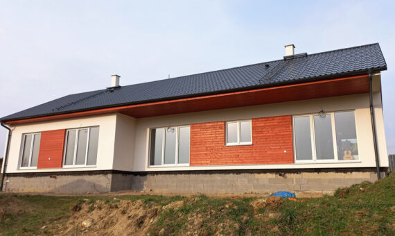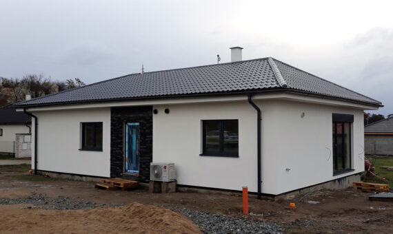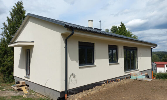 Dispozice domu je 5+kk na zastavěné ploše 98,5 m2.