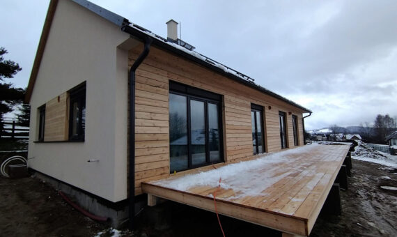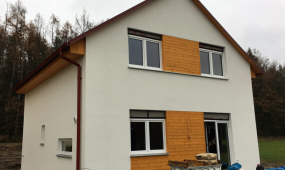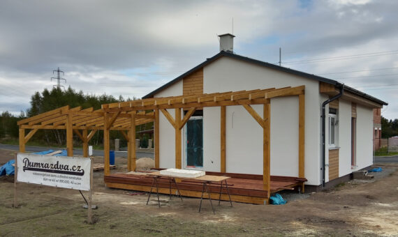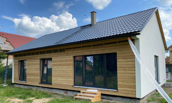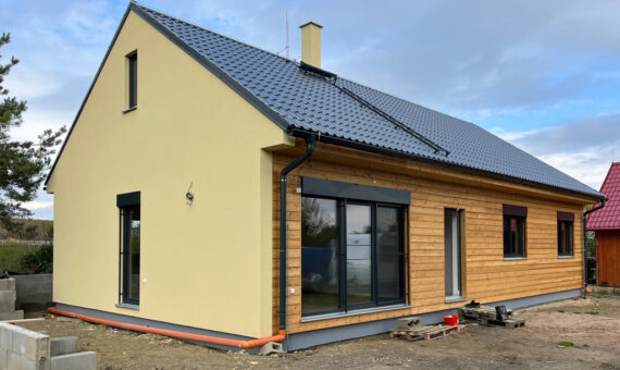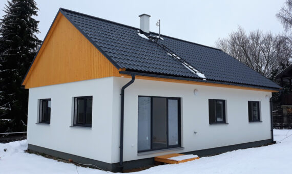 Dispozice domu je 6+kk na zastavěné ploše 65,5 m2.
