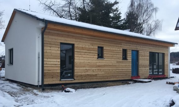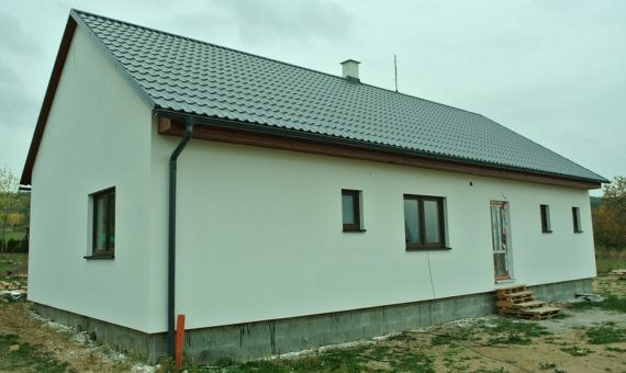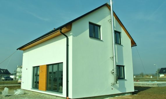 Dispozice domu je 5+kk na zastavěné ploše 66,7 m2.