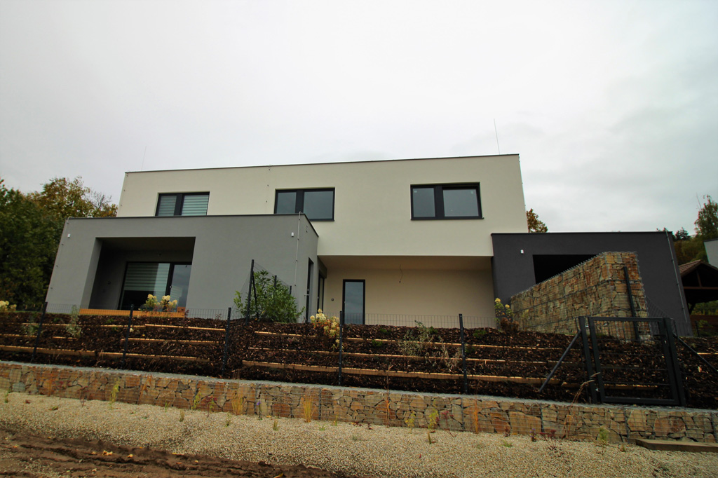 Dispozice domu je 3x 5+kk na zastavěné ploše 241,7 m2.