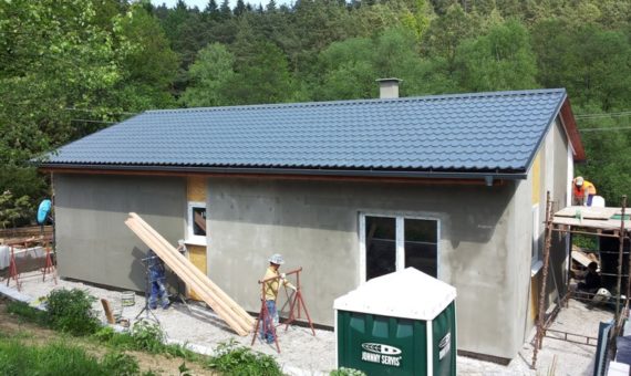 Dispozice domu je 4+kk na zastavěné ploše 87,8 m2.