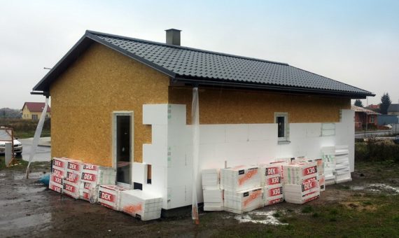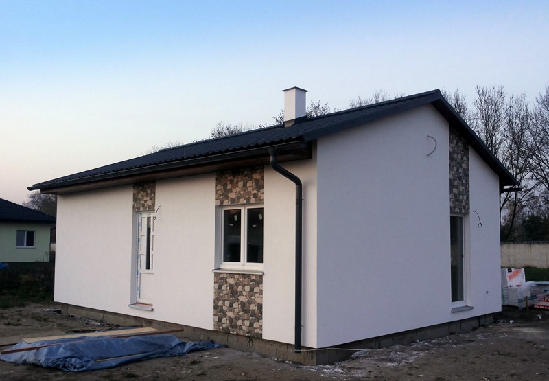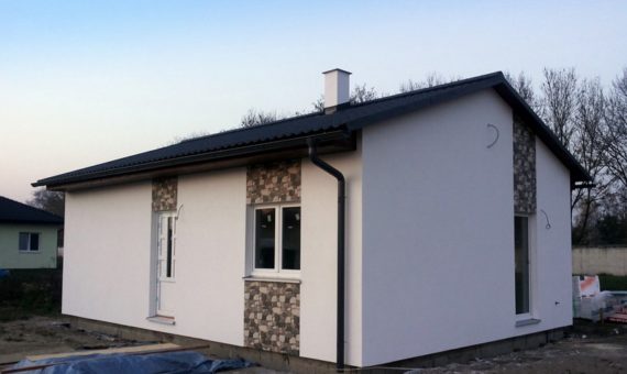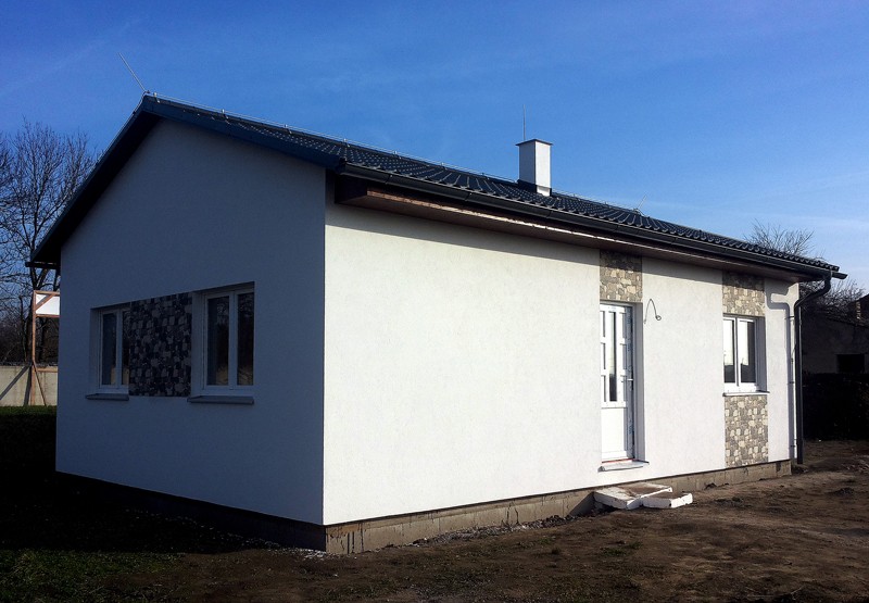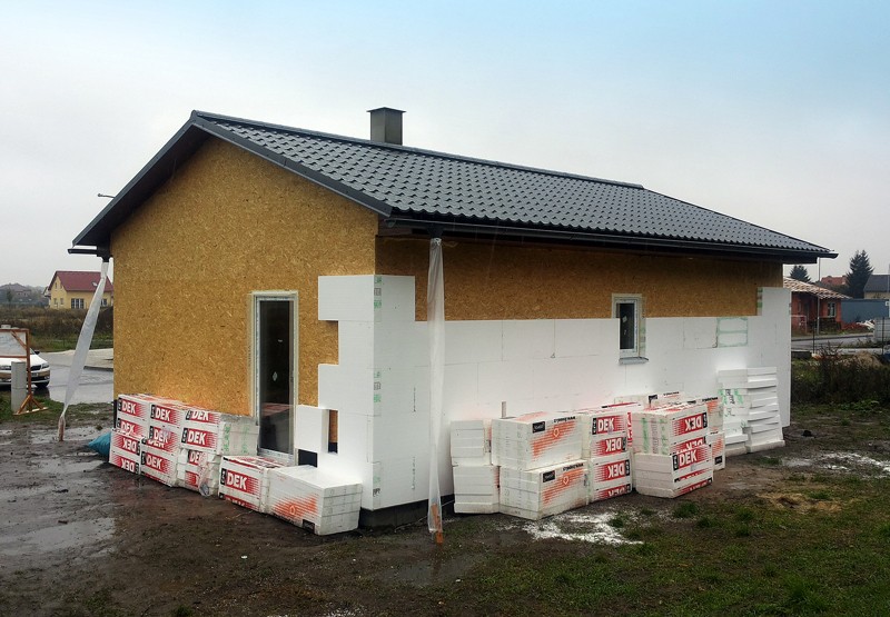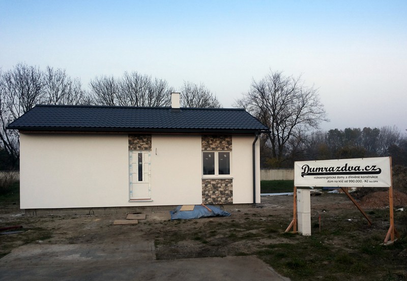 Dispozice domu je 3+kk na zastavěné ploše 65,3 m2.