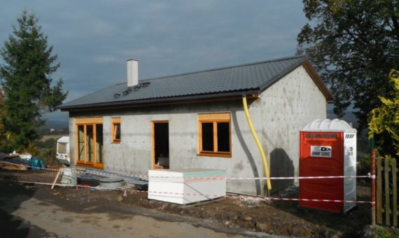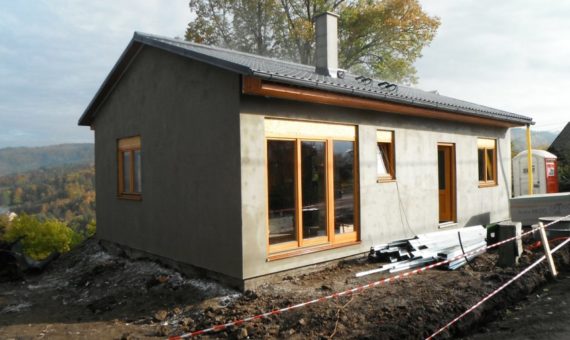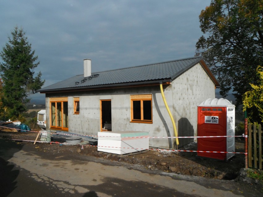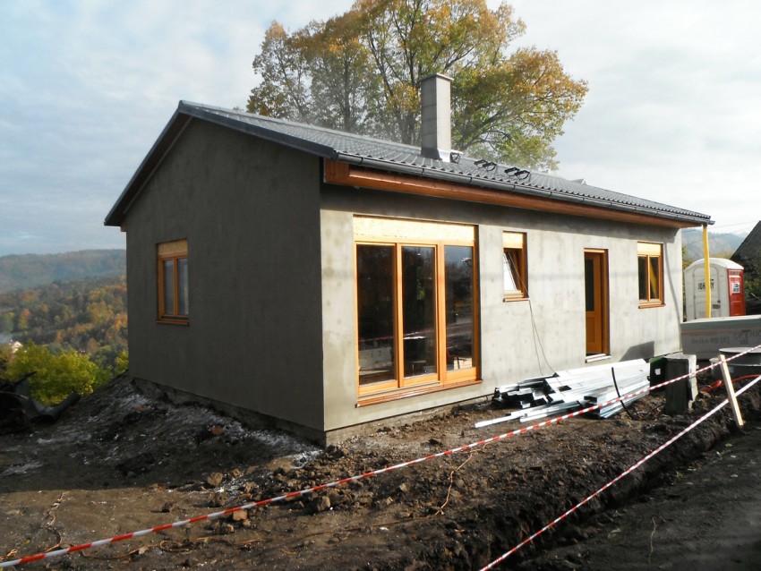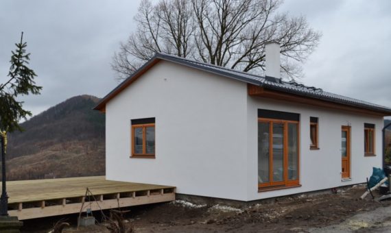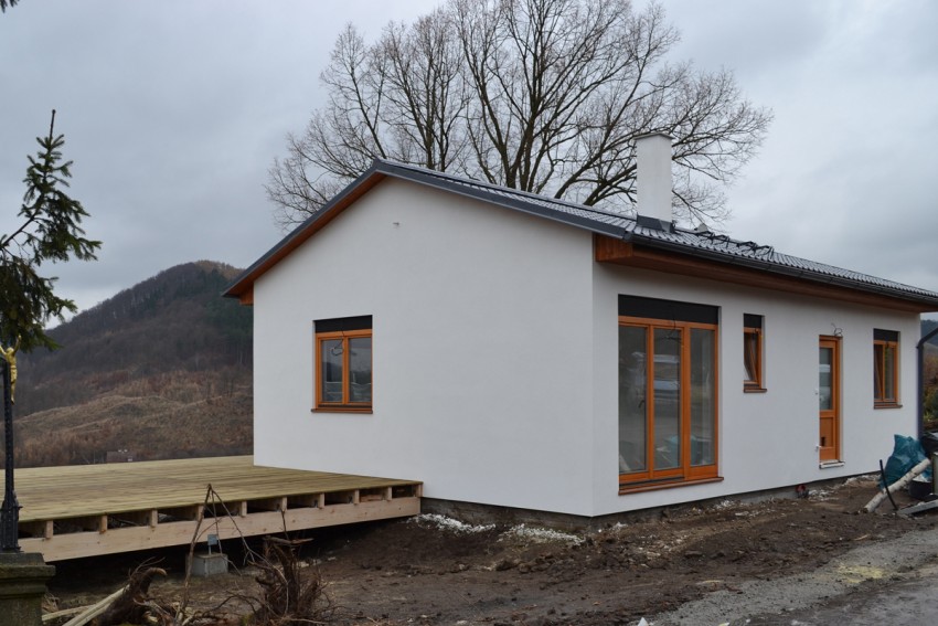 Dispozice domu je 3+kk na zastavěné ploše 73,7 m2.