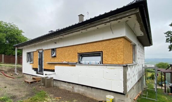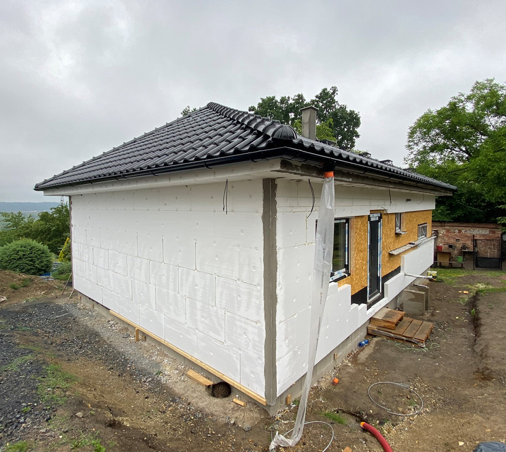 Bungalov 1++ – Větrušice – 2023 Bungalov 1++ – Větrušice – 2023 Dispozice domu je 3+kk na zastavěné ploše 93,4 m2. zpět