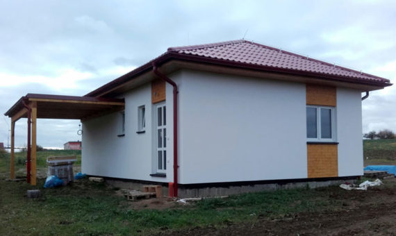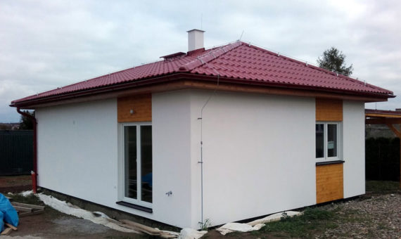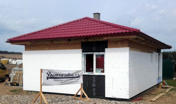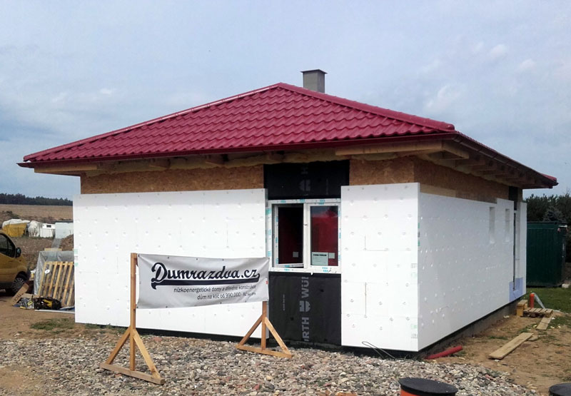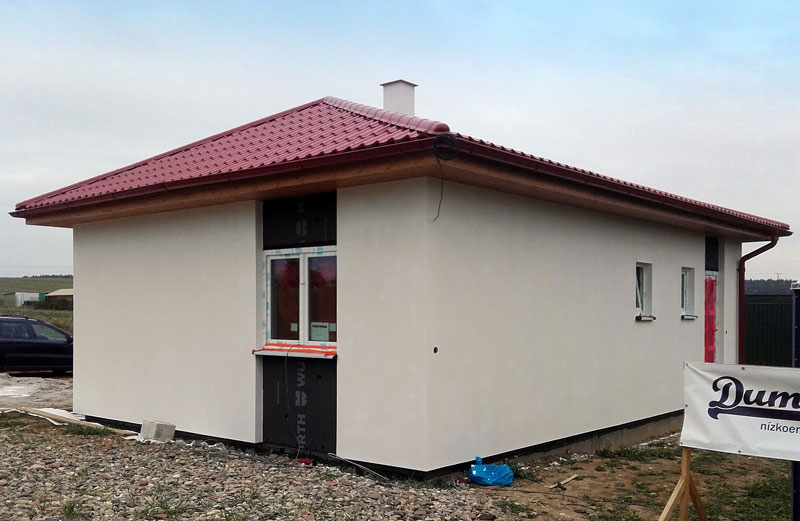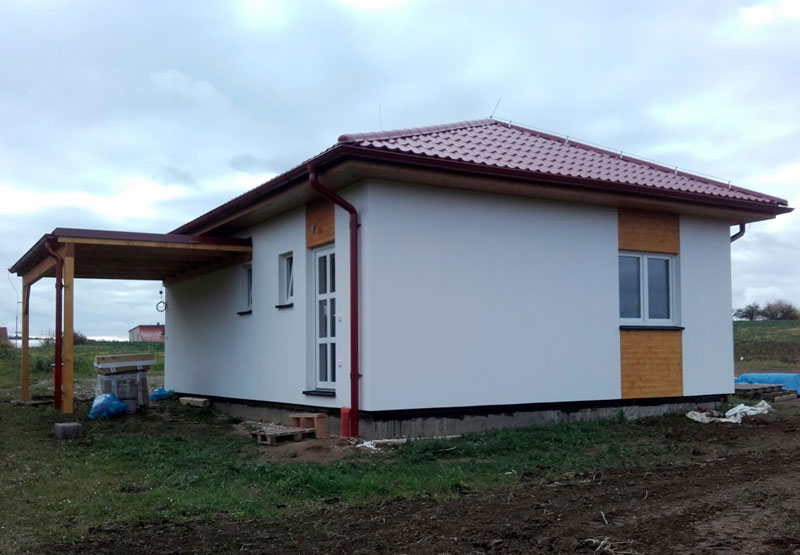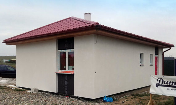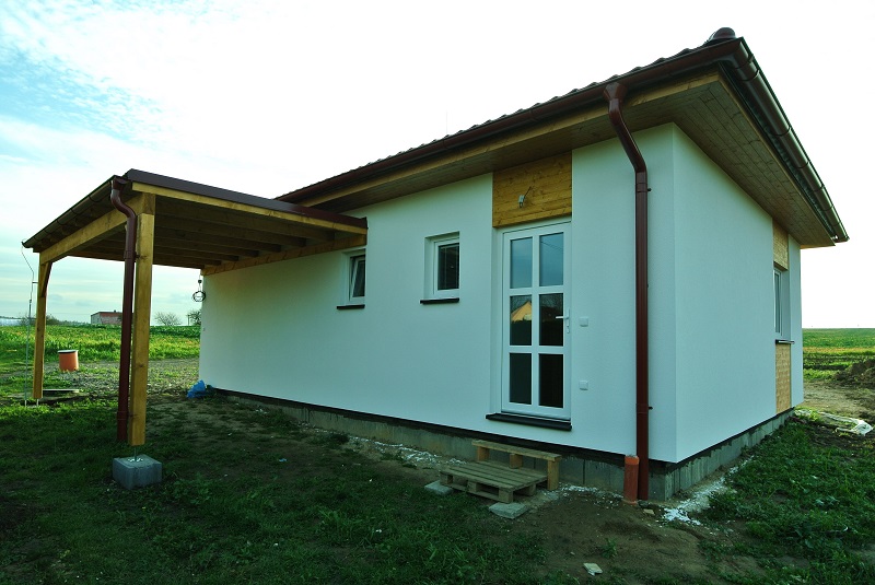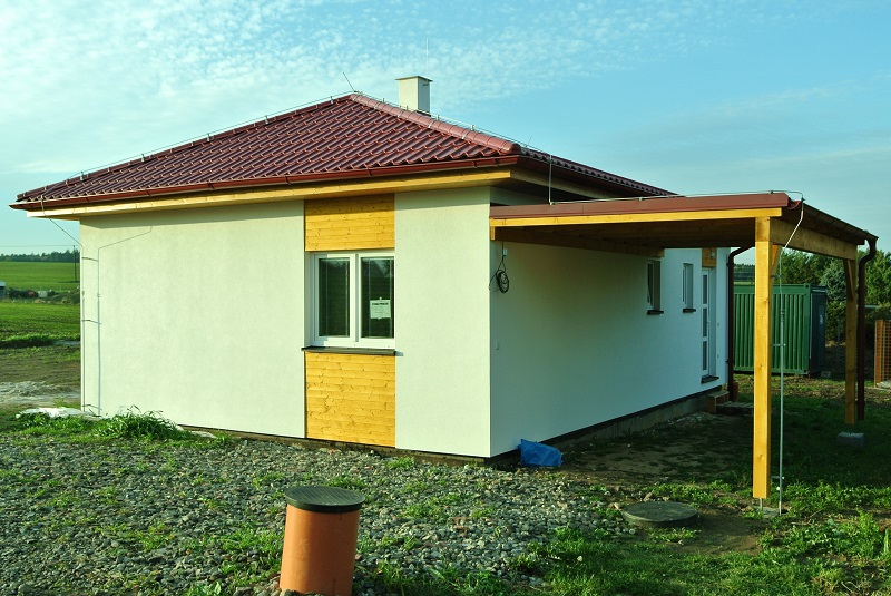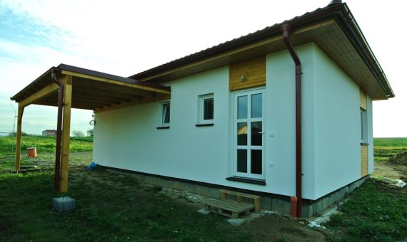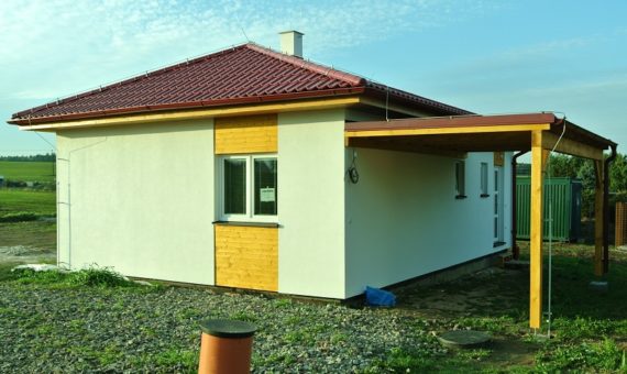 Dispozice domu je 3+kk na zastavěné ploše 67,5 m2.