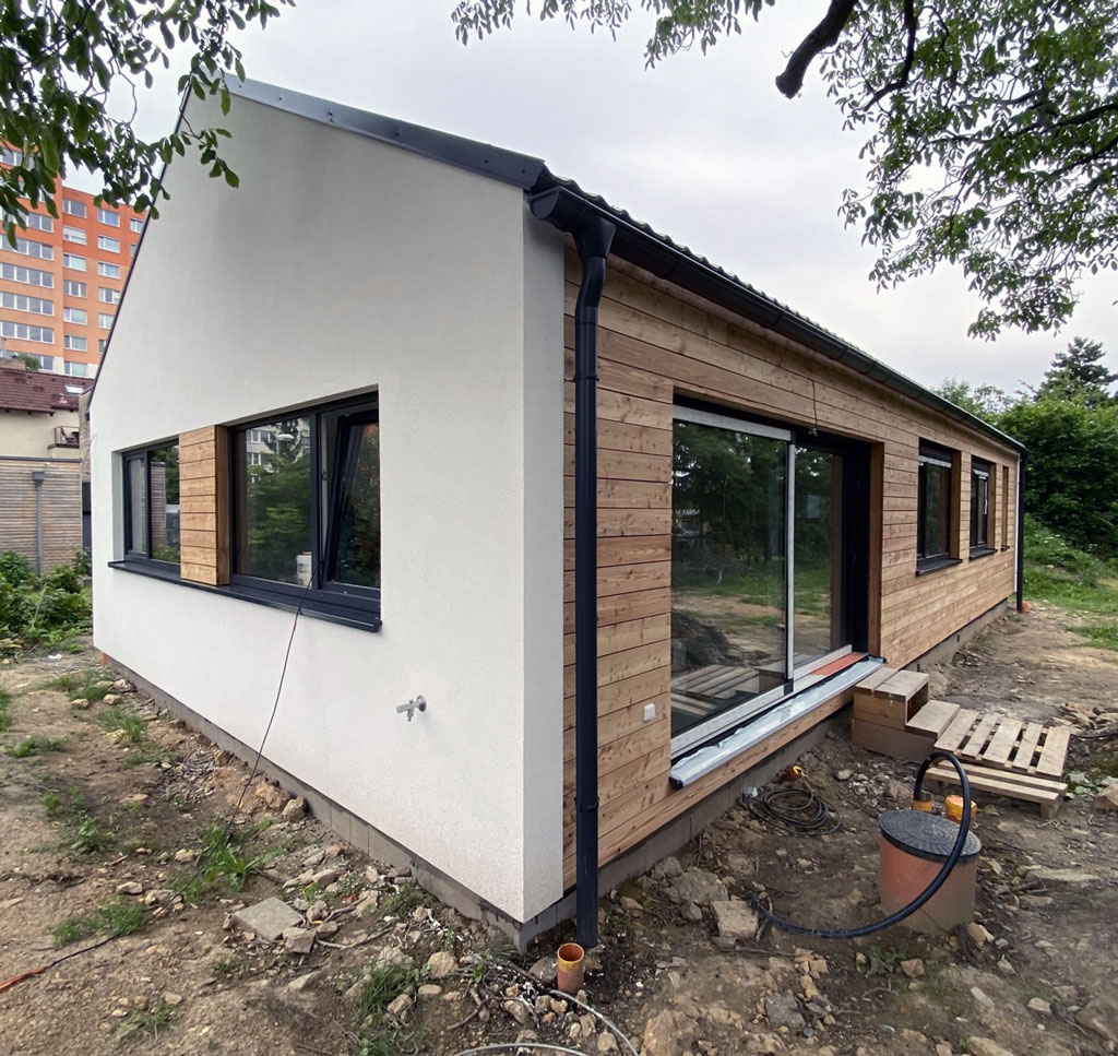 Bungalov 21 – Kamýk – 2025 Bungalov 21 – Kamýk – 2025 Dispozice domu je 4+kk na zastavěné ploše 119,6 m2. zpět