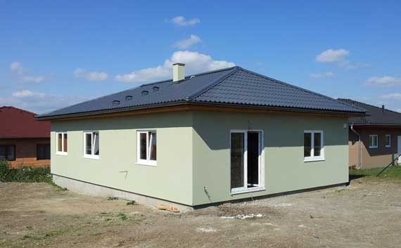 Dispozice domu je 4+kk na zastavěné ploše 114,8 m2.