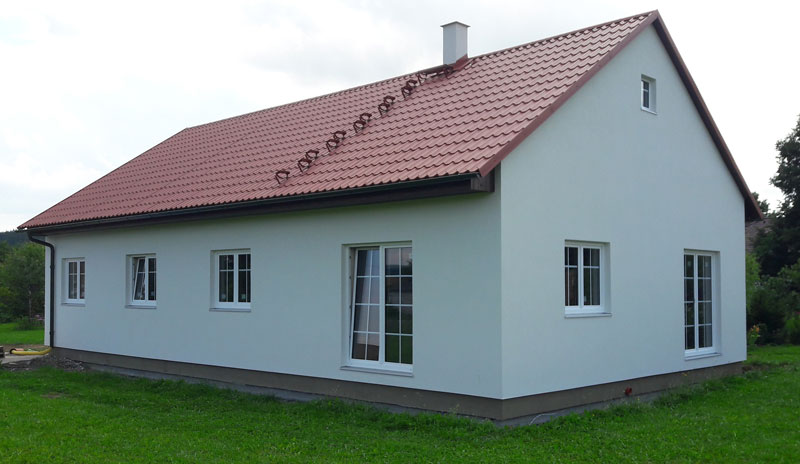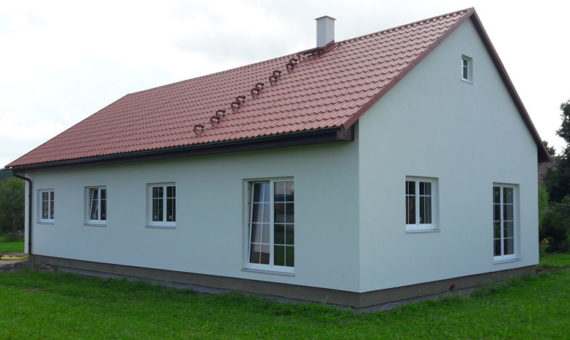 Dispozice domu je 5+kk na zastavěné ploše 128,7 m2.