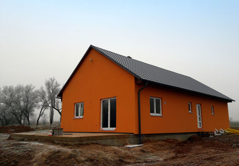 Dispozice domu je 5+kk na zastavěné ploše 128,7 m2.