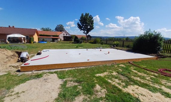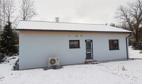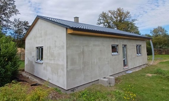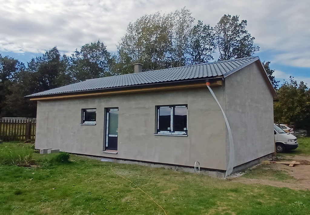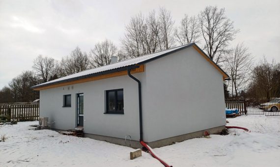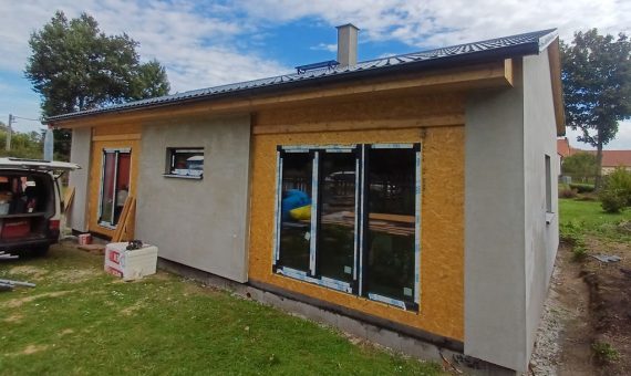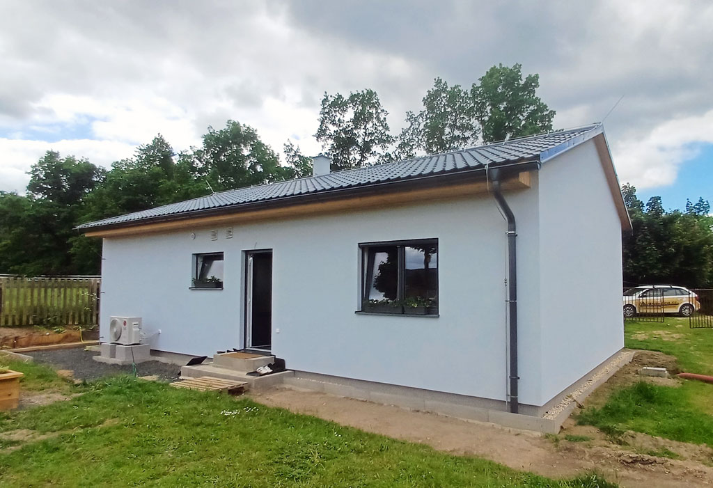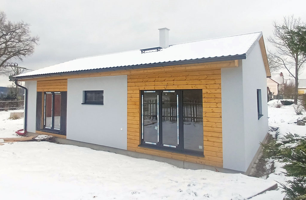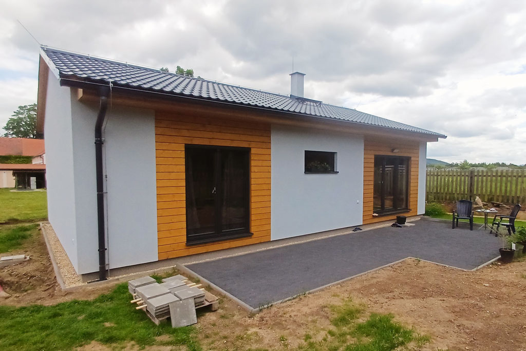 Dispozice domu je 3+kk na zastavěné ploše 93,9 m2.