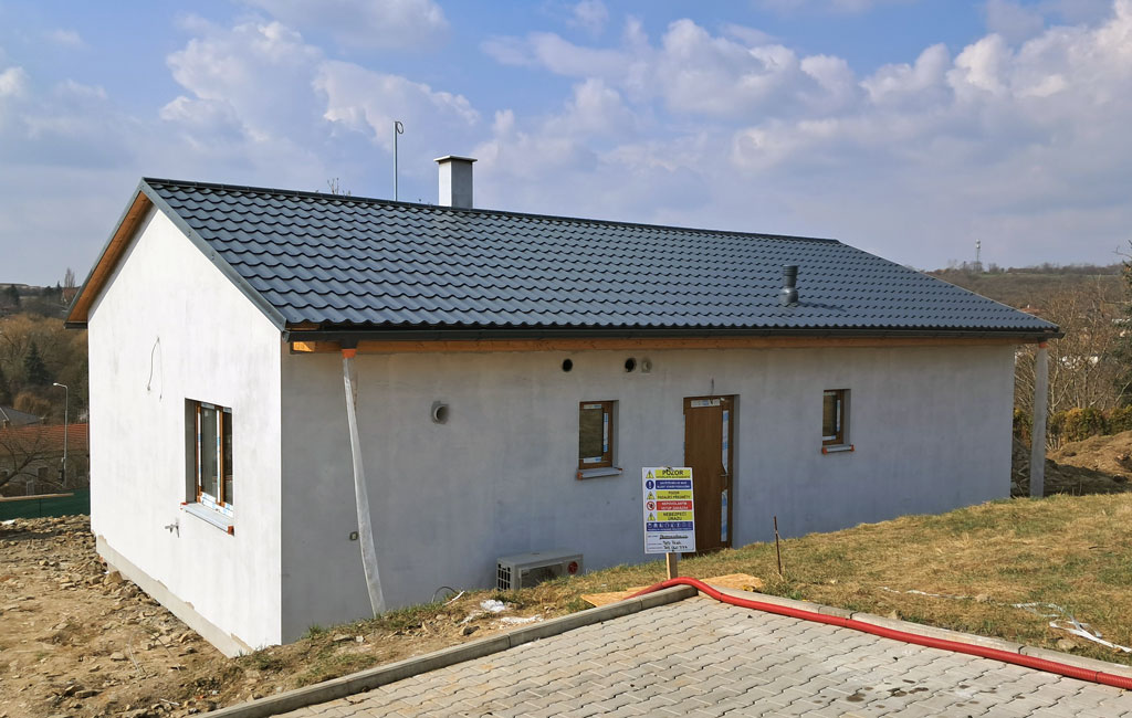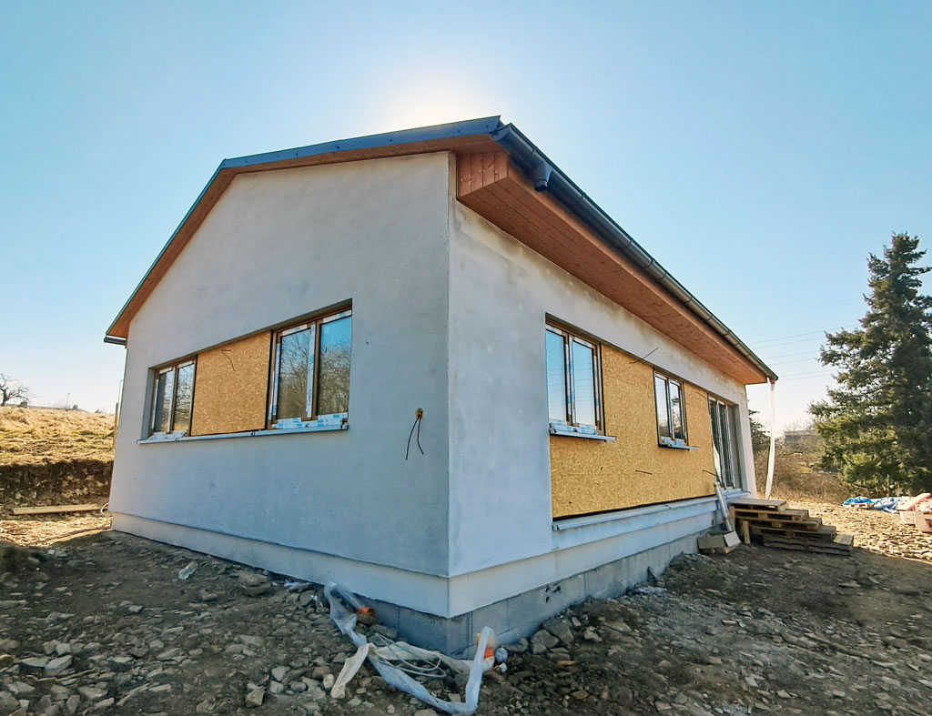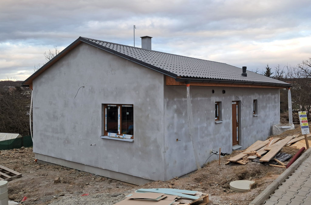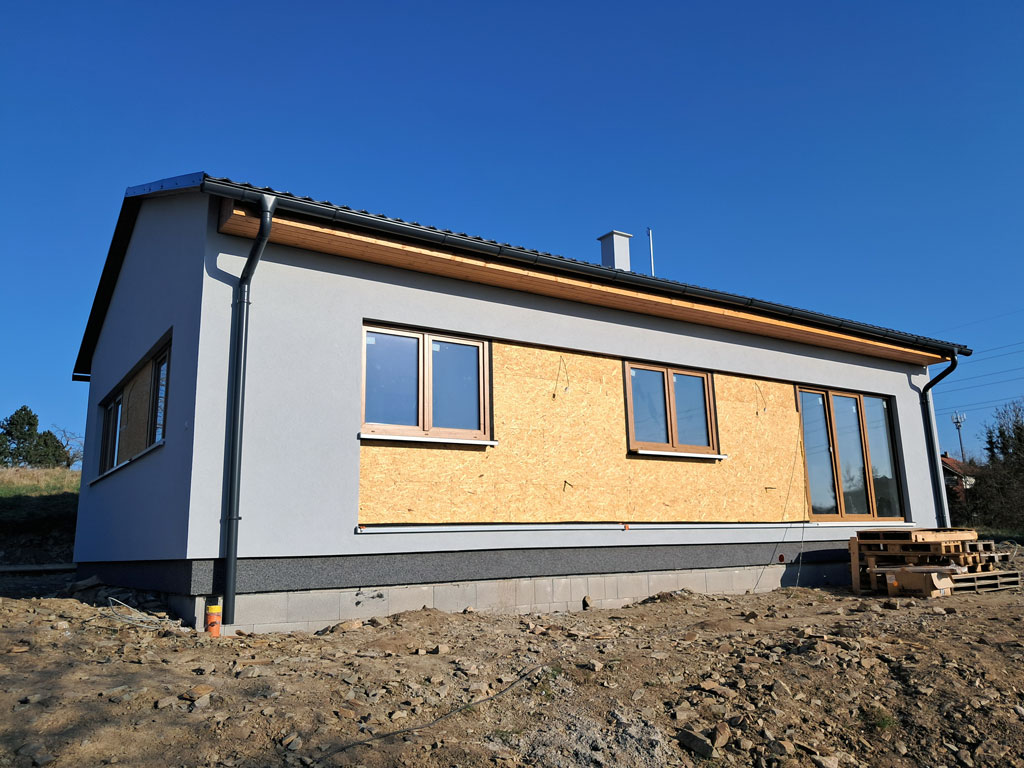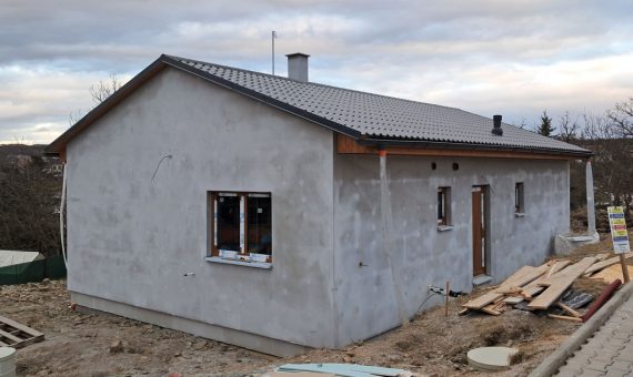 Dispozice domu je 4+kk na zastavěné ploše 93,9 m2.