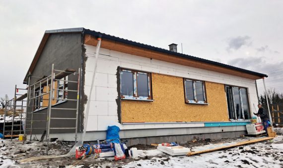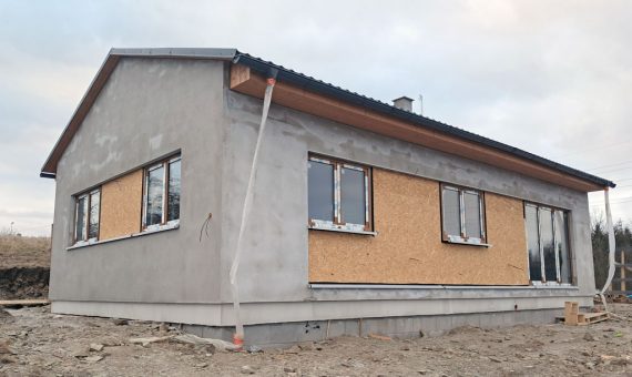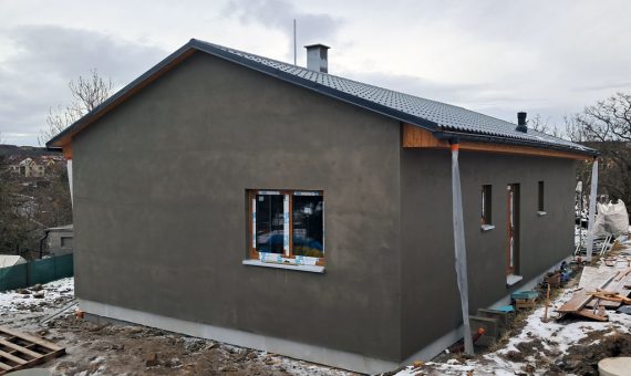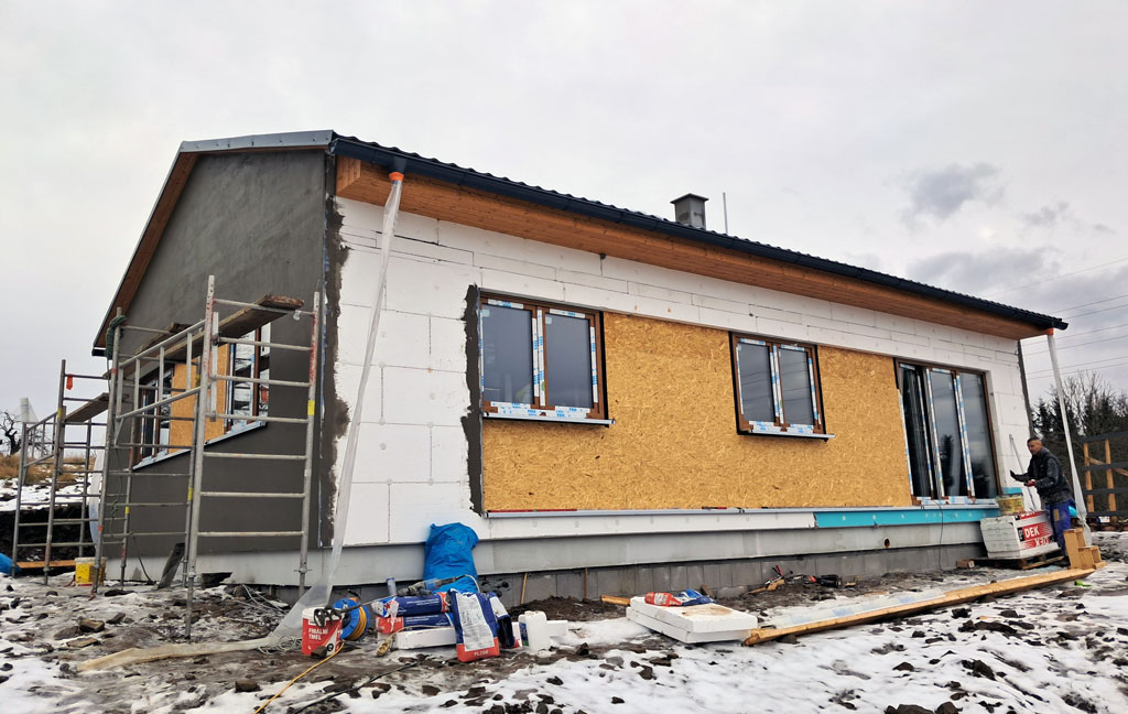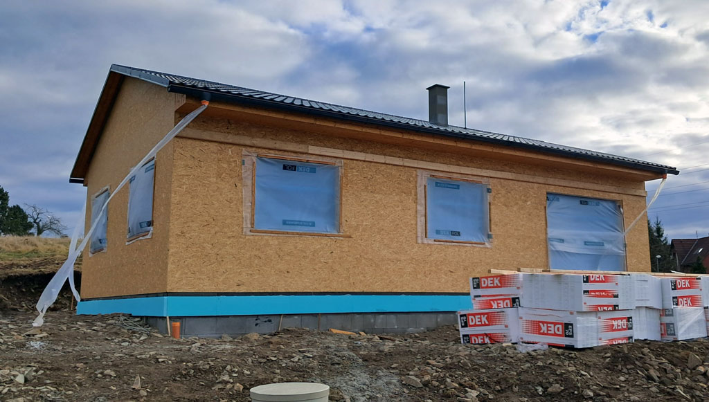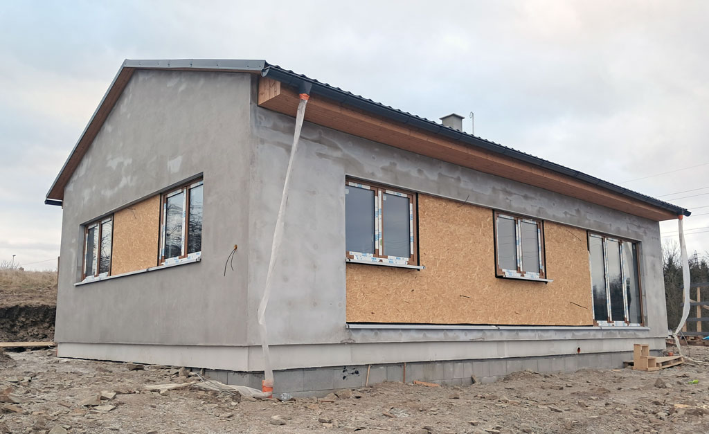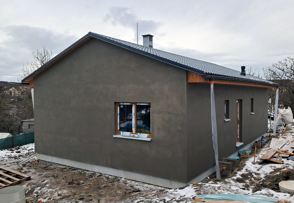 Dispozice domu je 4+kk na zastavěné ploše 93,9 m2.