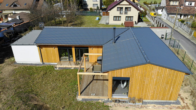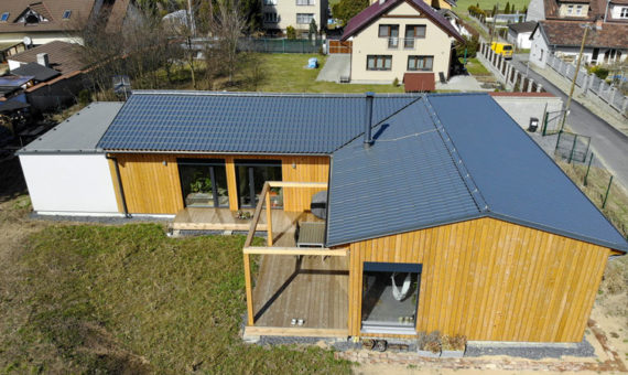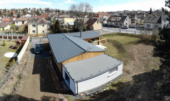 Dispozice domu je 4+kk na zastavěné ploše 186,4 m2.