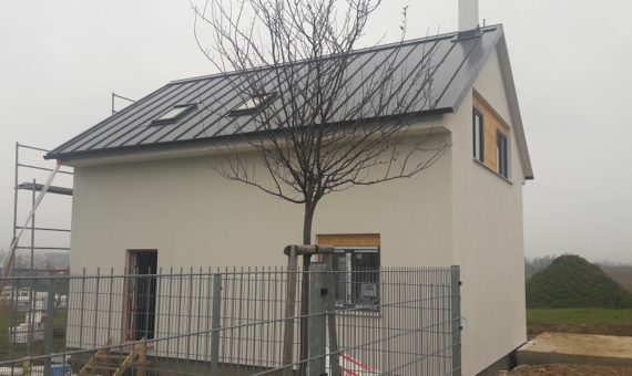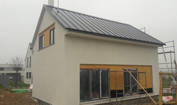 Dispozice domu je 5+kk na zastavěné ploše 66,7 m2.