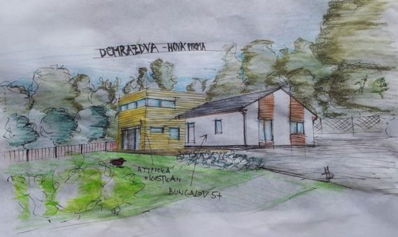 Náš nový vzorový dům je kombinací dispozičně upraveného katalogového domu Bungalovu 5+, který znáte z našeho katalogu domů Důmrazdva, a atypické patrové přístavby domu s pultovou střechou a atikami.