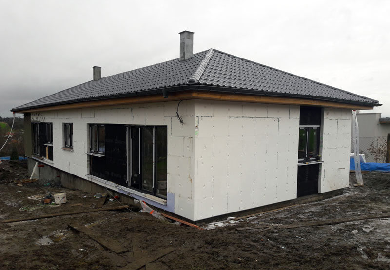 Dispozice domu je 2+kk + 3+kk na zastavěné ploše 140,5 m2