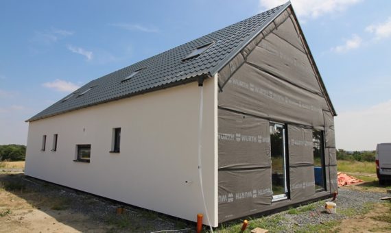 Dispozice domu je 4+kk na zastavěné ploše 124,7 m2.