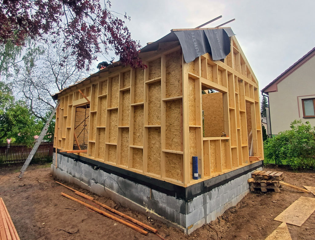 Dispozice domu je 2+kk na zastavěné ploše 61,1 m2.