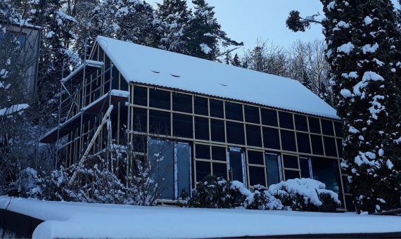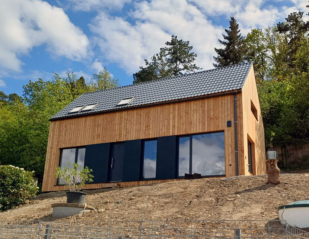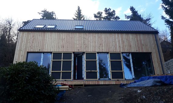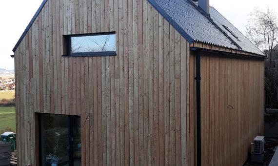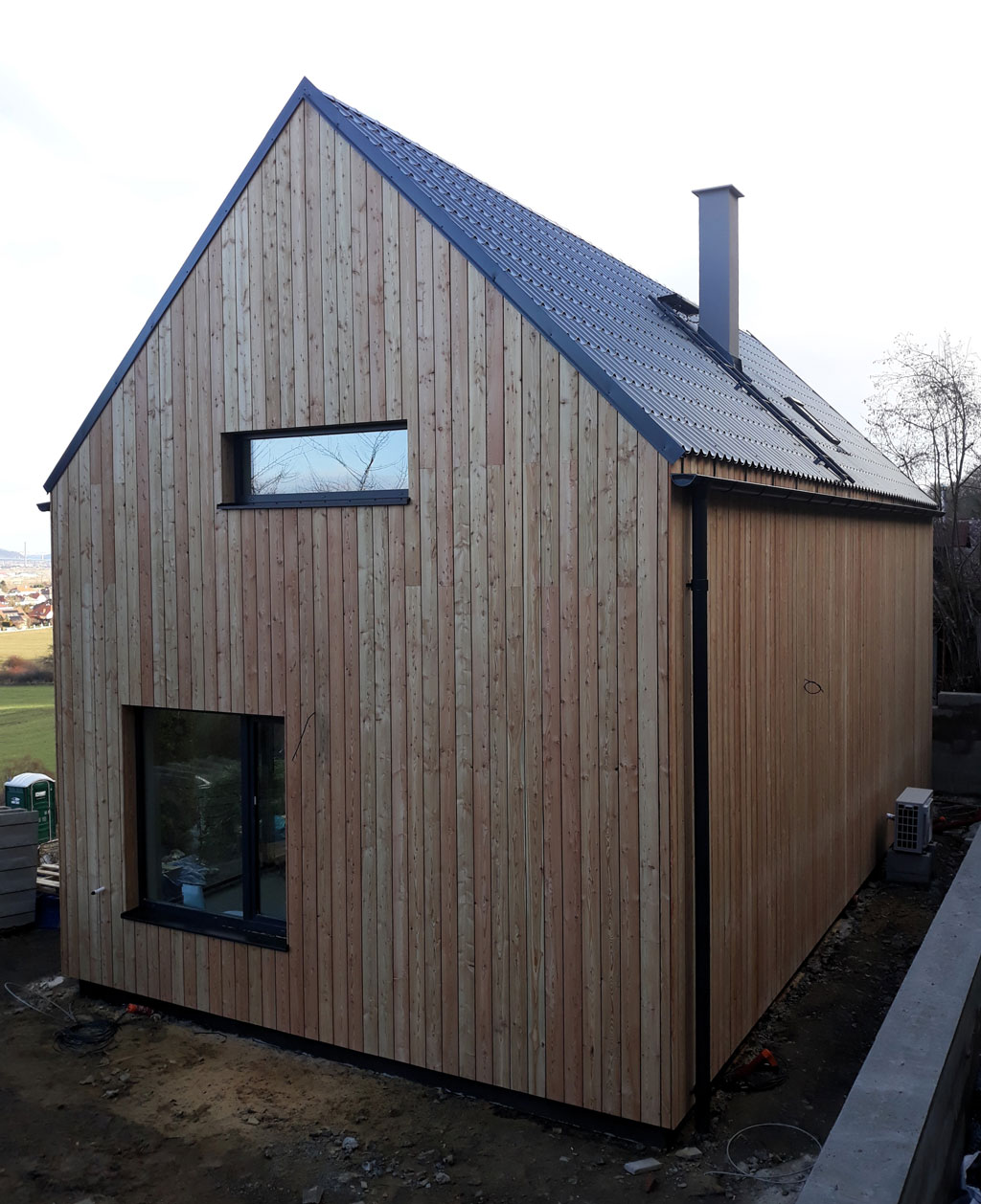 Dispozice domu je 2+kk na zastavěné ploše 73,4 m2.