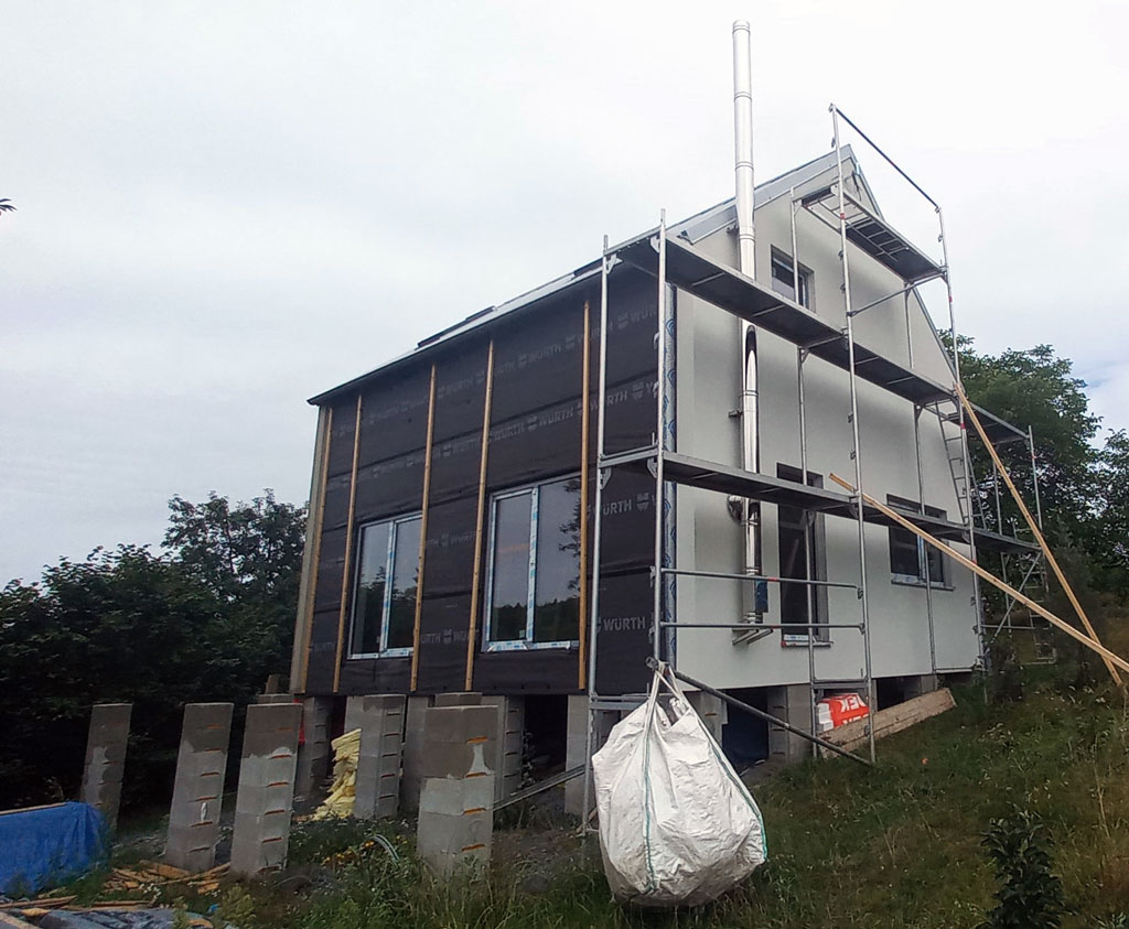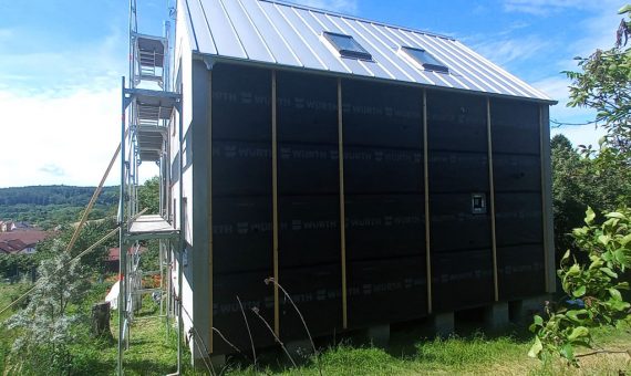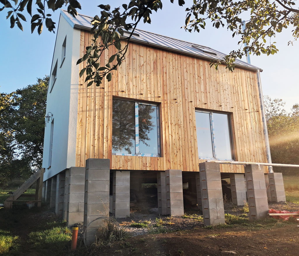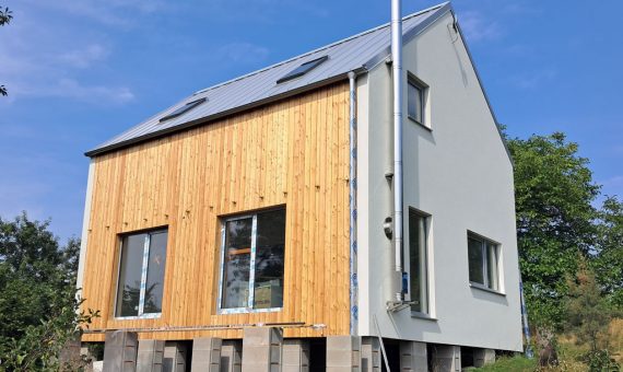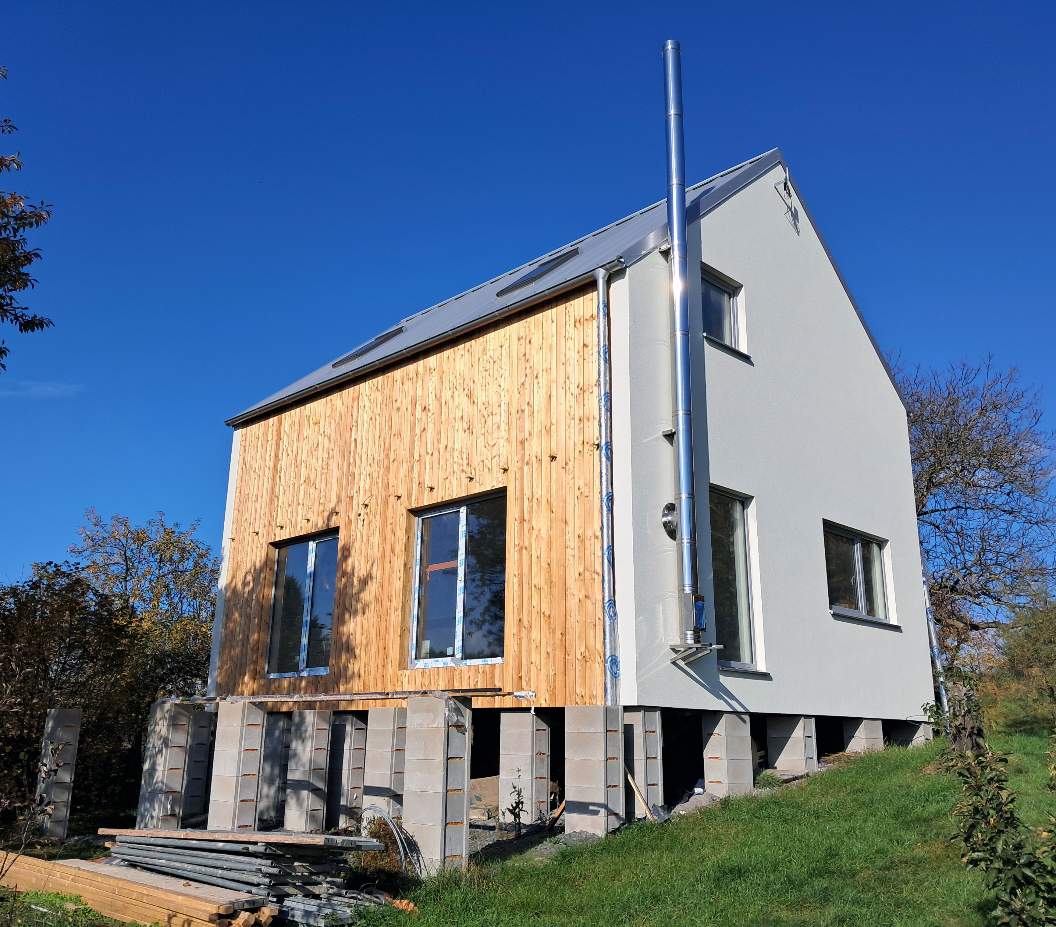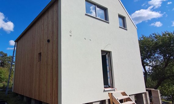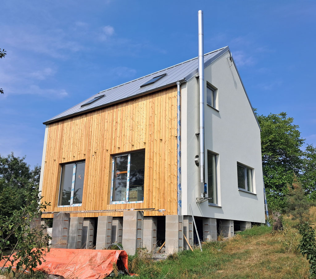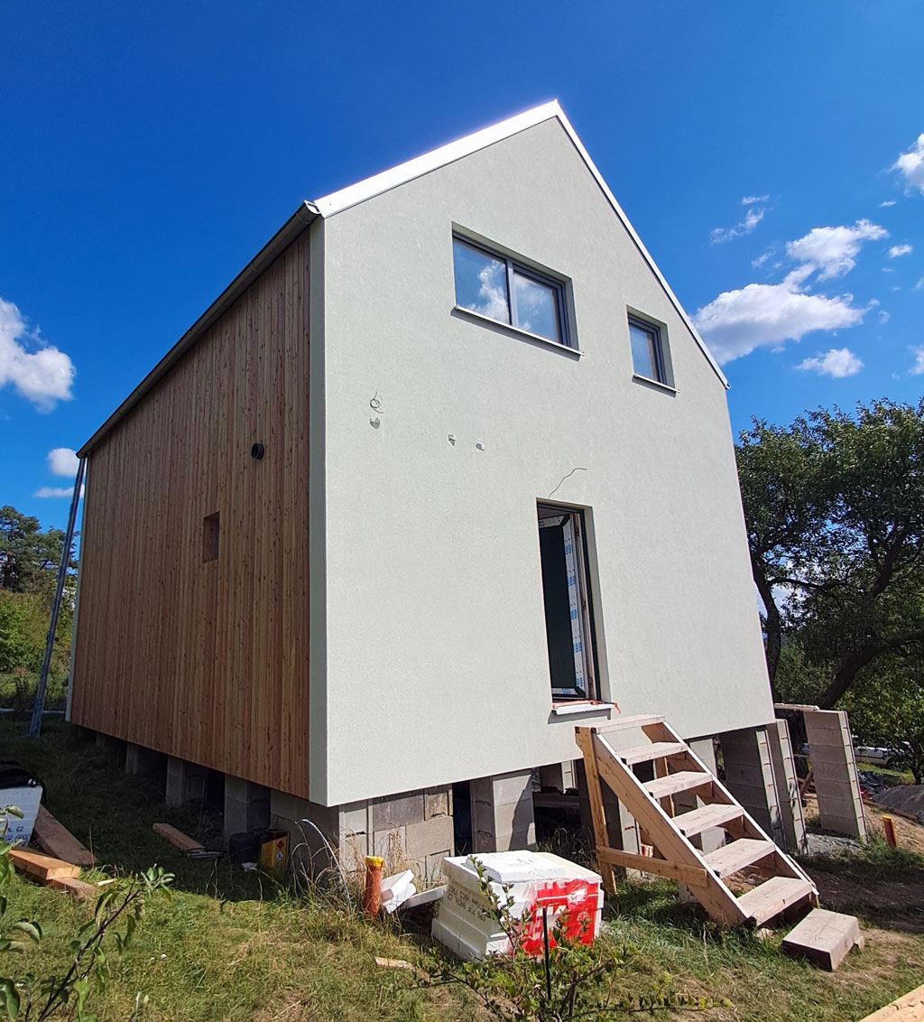 Dispozice domu je 4+kk na zastavěné ploše 61,3 m2.